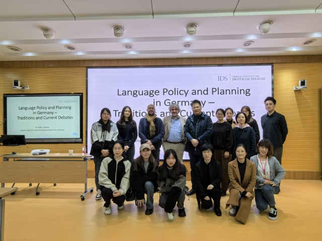 在讲座的互动环节,主讲人一一回应在座师生有关德国语言政策和政治的关系、德语教学以及语言政策的最新发展方向等问题,现场师生收获颇丰,倍受启发。最后,沈骑教授代表在座师生感谢Dr. Marten的精彩报告和细致解答,期待进一步交流与合作。