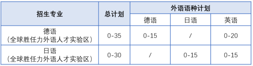 高中所学外语语种为英语语种的考生可以填报一至两个专业志愿,并选择是否服从调剂;高中所学外语语种为德语语种的考生仅能填报德语专业;高中所学外语语种为日语语种的考生仅能填报日语专业。未按要求填报的专业志愿无效。