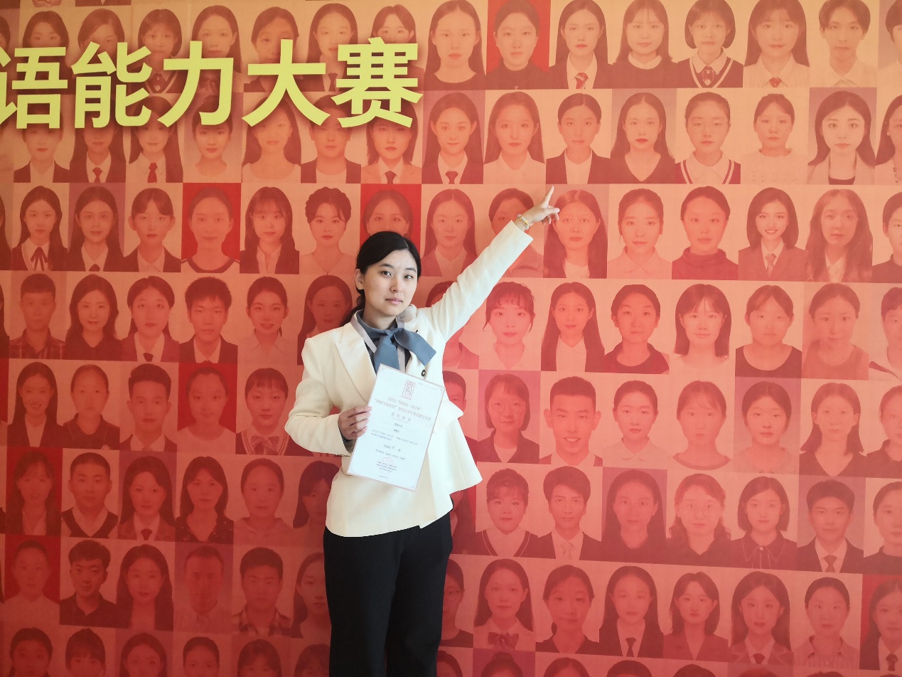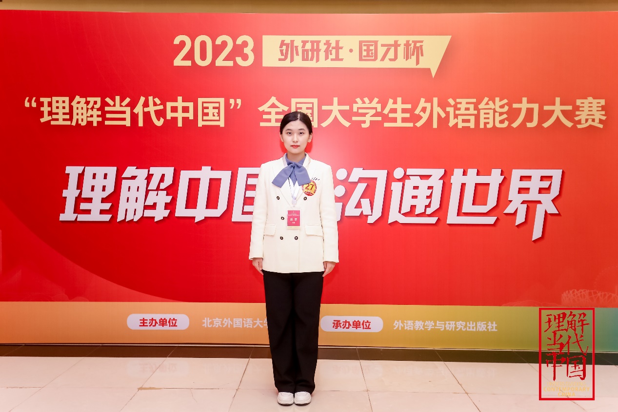 从校赛到省赛再到国赛,最终来到北京、站在全国总决赛的舞台,一路走来我感触良多。首先感谢林茜茜老师、市来弘志老师、时晓阳老师以及梁艳老师,每一次集训前老师们的用心准备、每一次练习后的鼓励、每一场比赛时的陪伴,一幕一幕,我都会铭记于心。正是老师们的鼓励与肯定让我更加的自信!通过本次全国总决赛之旅,我明晰了未来前进的方向。我会继续努力,不断提升自身水平,与时代同向同行,发青春之声,扬奋斗之志,奏强国之音,用日语讲好中国故事。最后,再次感谢所有的指导老师,感谢公司公司的支持!