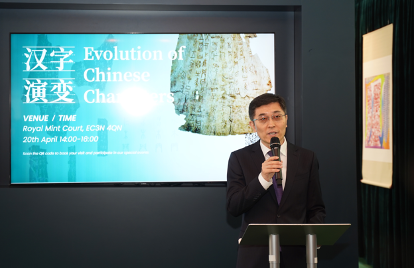 中国驻英国使馆杨晓光公使在致辞中表示,汉字是世界上最古老的文字之一。它历经数千年的演进、变革和发展,已深深融入了中华民族的文化基因。汉字稳重端庄、均衡对称、底蕴丰厚,展现了中化文化注重和平、和谐、合作的特性,见证了中华文明的起源,记载了中国历史的变迁,促进了中外文化的交流。