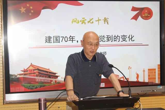 外语人的前辈、关工委的曹英多老师主要从文化教育方面谈了谈新中国成立70年来他所感觉到的变化,并且分享了自己的受教育经历,感谢党和国家给了他学习的机会,感慨国民的文化程度都得到了提高!