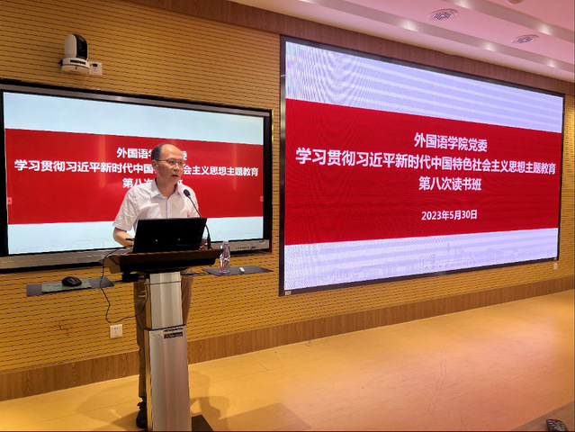 郑春荣传达学习习近平总书记在中共中央政治局第五次集体学习时的重要讲话精神。会议强调,建设教育强国、科技强国、人才强国具有内在一致性和相互支撑性,要把三者有机结合起来、一体统筹推进,形成推动高质量发展的倍增效应。其中,教育数字化是我国开辟教育发展新赛道和塑造教育发展新优势的重要突破口。进一步推进数字教育,为个性化学习、终身学习、扩大优质教育资源覆盖面和教育现代化提供有效支撑。郑春荣指出,人工智能对教育有非常深刻的影响,要积极推动人工智能和教育深度融合,促进教育变革创新。范教授是人工智能专家,相信通过他对人工智能技术的介绍和分析,能为开辟人工智能和外语学科交叉融合方向提供新启示。