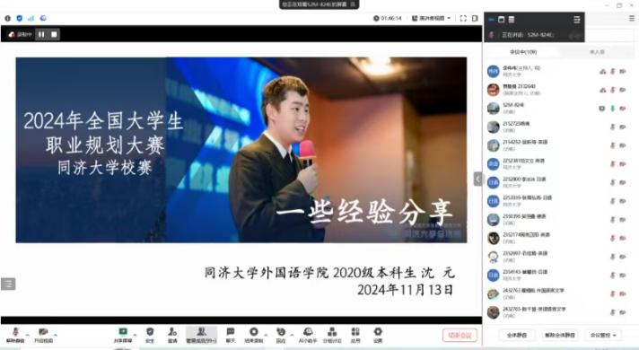 讲座最后,1946伟德国际源自英国南熙、沈元两位同学结合自己的参赛经历,从解读比赛政策、准备生涯发展报告和个人简历、展示PPT制作思路等方面与同学们分享经验,同时鼓励大家积极参赛,以进一步提升自我认知、明确职业发展目标、提升就业竞争力。