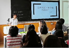 英语系毛薇老师作为实习指导教师代表对即将参加实习的同学们给予了关心和嘱托,她希望同学们与实习指导老师保持密切联系,随时汇报实习进度,利用暑期专业实习充分锻炼专业知识和综合能力,通过实习确定自己未来的发展方向。