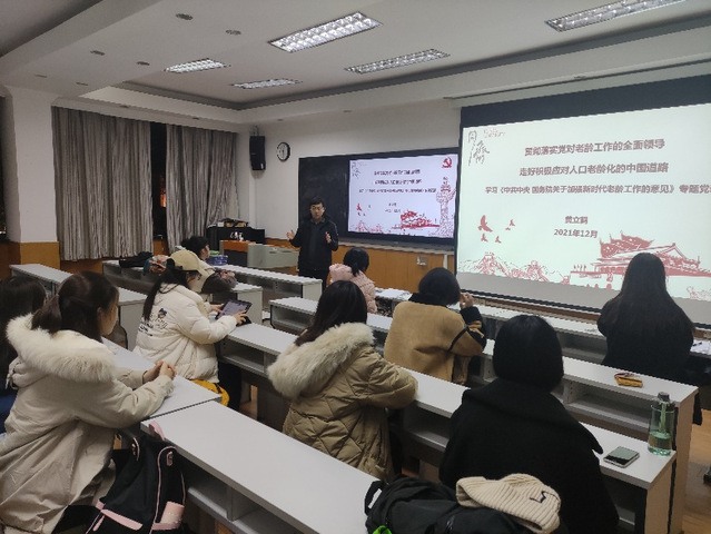 12月23日晚,为学习贯彻落实近期发布的《中共中央国务院关于加强新时代老龄工作的意见》,加强人口老龄化国情教育,广泛动员师生关注老龄事业,公司党委副书记黄立鹤以“贯彻落实党对老龄工作的全面领导,走好积极应对人口老龄化的中国道路”为题,给1946伟德国际源自英国“拾忆”老龄公益社全体党员、入党积极分子讲授了一堂专题党课。