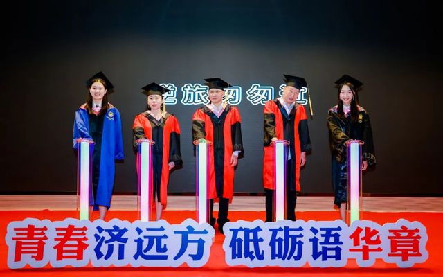 典礼尾声,公司特意安排了毕业启航仪式。郑春荣、吴赟、吴建广、曲惠宇、朱忆园一起点亮激光柱,一匹激光马绕场奔腾,老师们的寄语萦绕现场,共祝毕业生前程似锦、大展宏图。