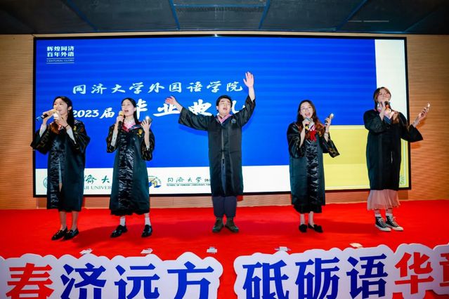 随后,伴着毕业生用中、英、德、日四语改编的歌曲《干杯》,同学们跟随毕业纪念视频回忆起在同济难忘的瞬间。李疏贝宣读毕业生联络人名单并颁发聘书,希望大家以同济人的身份继续投入到将来的学习工作中去。