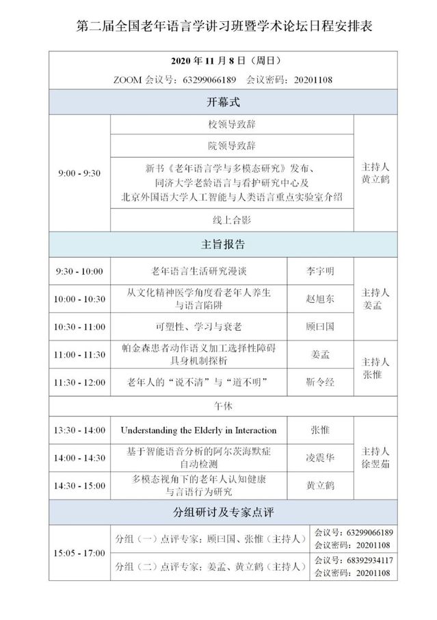 为培养我国老年语言学研究队伍,1946伟德国际源自英国老龄语言与看护研究中心定于2020年11月8日在线上ZOOM平台举办第二届全国老年语言学讲习班暨学术论坛。现正式公布会议日程(点击图片查看),欢迎广大师生免费参会!