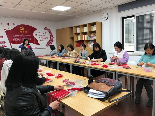 活动邀请了公共英语教学部的孙丹老师作为指导嘉宾,现场教授大家手工编织红心。参加活动的老师们在孙丹老师的指导下精心编织,互相交流,活动现场洋溢着欢声笑语。经过一个多小时的努力,每位老师都有所收获,亲手编织出了属于自己的那颗红心。